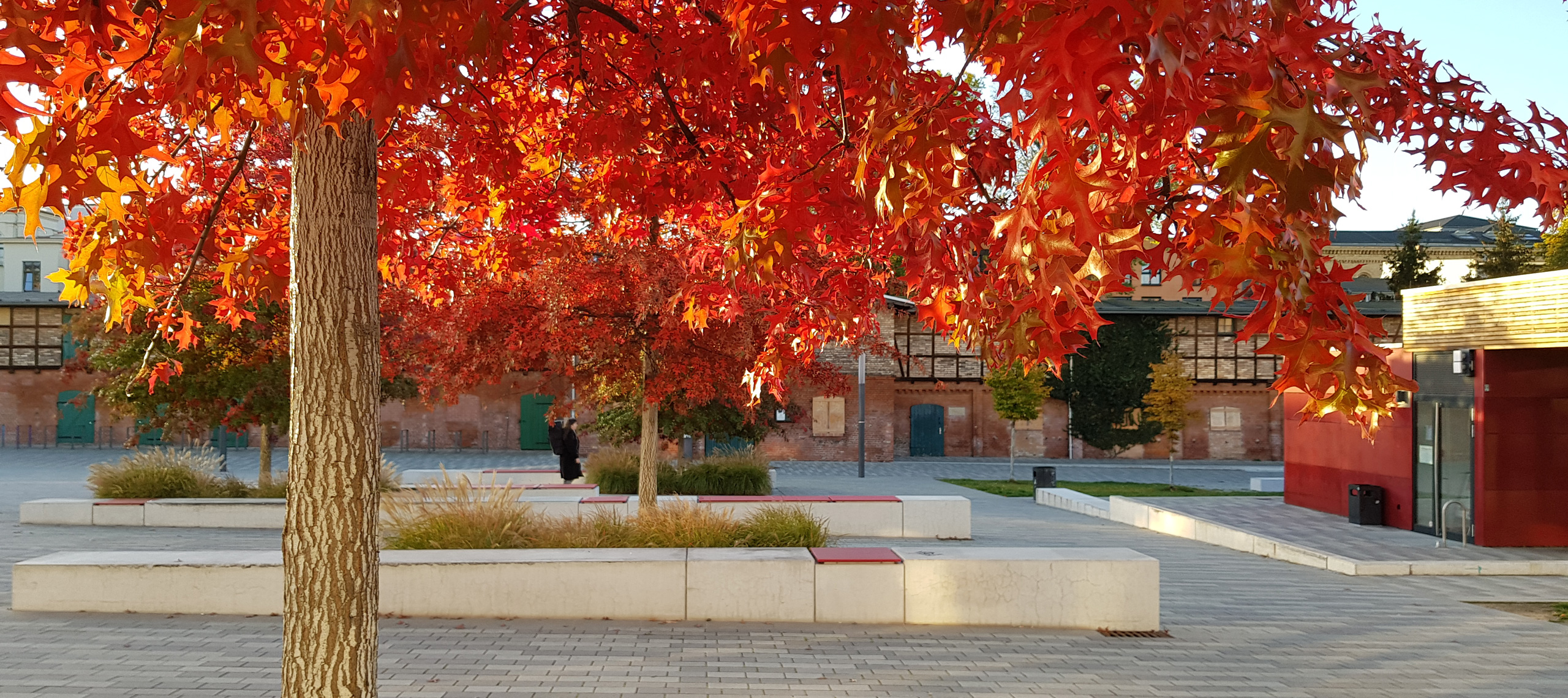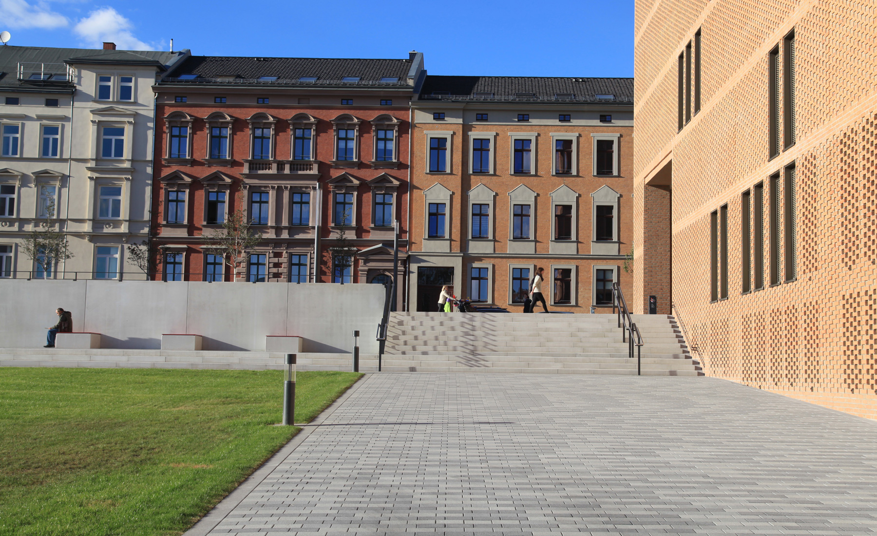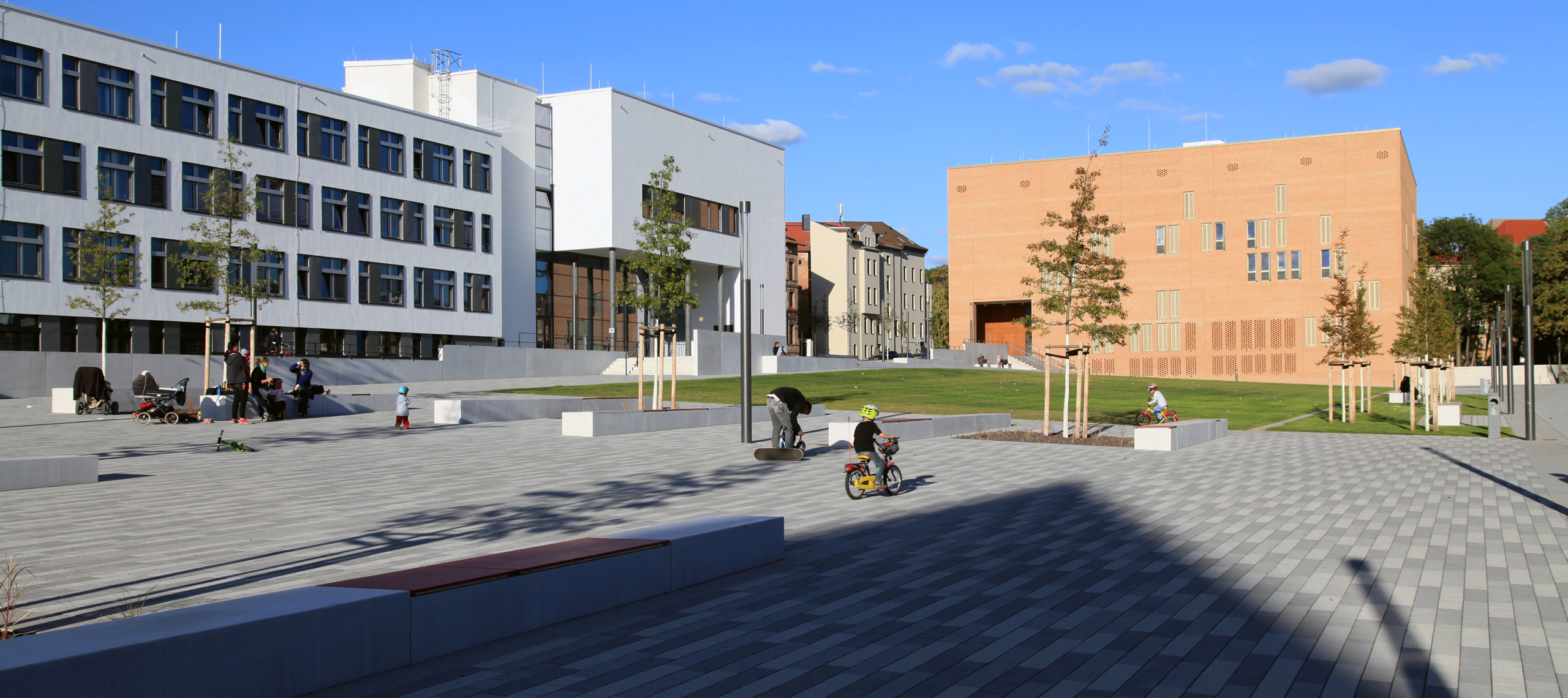 Durch die neu entstandene städtebauliche Struktur wurden unterschiedliche Platzsituationen und Aufenthaltsbereiche für Studierende, Lehrende und die Bevölkerung der angrenzenden Wohnbereiche geschaffen. Eine Passage zum Steintor mit Steintorvarietee stärkt die Vernetzung mit dem öffentlichen Stadtraum und die Anbindung an den ÖPNV.